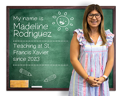 Madeline Rodriguez was born outside of Chicago, IL and moved to Fort Myers at a young age. She is a proud alumni of Saint Francis Xavier Catholic School and Bishop Verot High School. She received her Bachelor’s degree in Business from Loyola University Chicago. Before Ms. Rodriguez started teaching, she worked in Product Management and Marketing for 5 years. She joined St Francis Xavier in 2023. In her spare time, she enjoys spending time with family and friends and traveling!